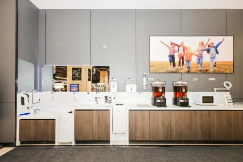 便民服务区配置了血压测量仪、充电宝、直饮水等设施,提供擦手纸、护手霜等贴心物品。门店入口设置宠物寄存处与人脸识别寄存柜,客服台还提供上门退换货、免费冰袋等超值服务,彰显人性化关怀。